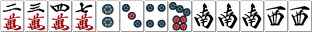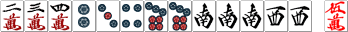 | そして見よ!この力強いツモ「東」の姿を! 「ツモ、ホンイツ西」から二巡廻しただけで役満のテンパイだ! 二巡だけにまさに夢の倍々ゲーム! |